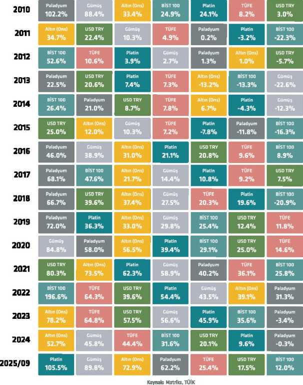 Tarihsel veriler, hisse senedi piyasalarının zayıf seyrettiği dönemlerde altının ters yönlü hareket ederek yatırımcıyı koruduğunu gösteriyor. 2008 küresel krizi sırasında Borsa İstanbul yüzde 52 değer kaybederken, altın yüzde 38 yükseldi. 2018’de borsadaki yüzde 21’lik düşüşe karşılık altın yüzde 37 değerlendi. Bu tablo, altının hem kur şoklarına hem de piyasa risklerine karşı güvenli liman olma rolünü pekiştiriyor.