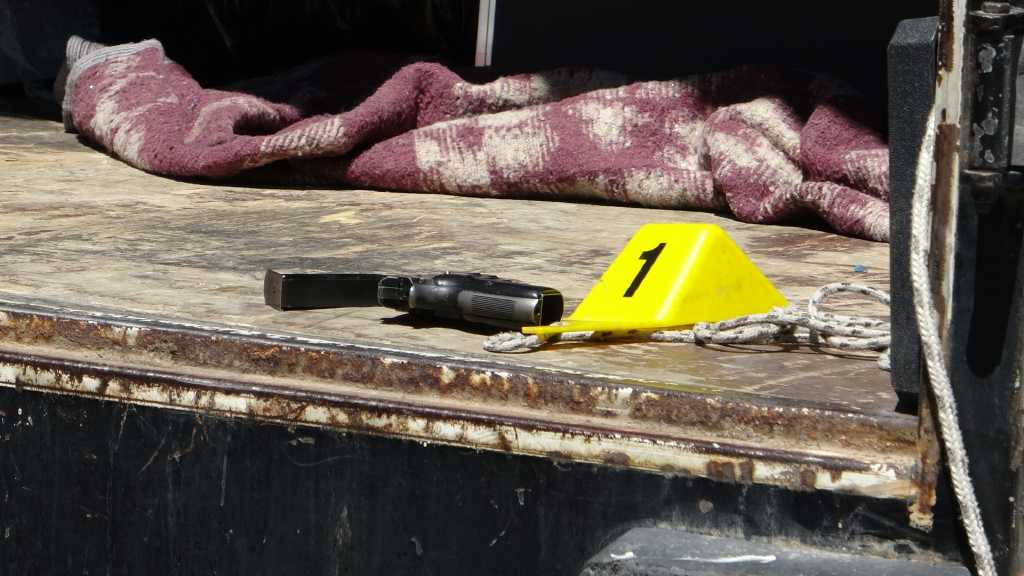 Bölgede inceleme yapan ekipler 1 adet tabanca ile çok sayıda boş kovan buldu.