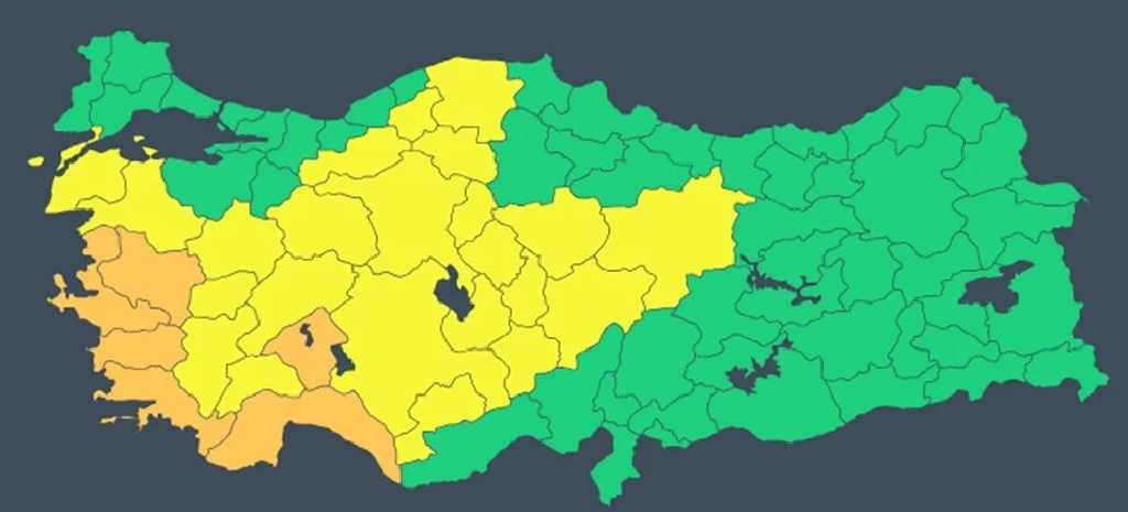 Turuncu kod verilen iller: Antalya, Aydın, Isparta, İzmir, Manisa, Muğla