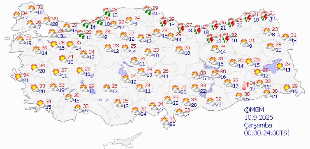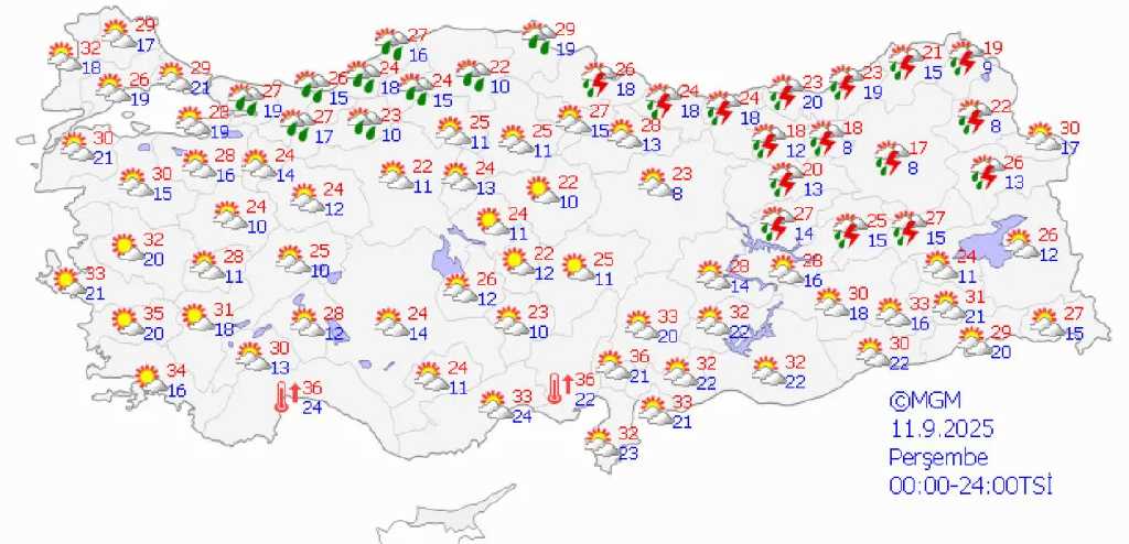 Son verilere göre Doğu Karadeniz kıyıları ile Afyonkarahisar, Karabük, Çankırı, Kastamonu çevreleri ve Ankara’nın güney ilçelerinde yağışların kuvvetli olması tahmin ediliyor. MGM, bu bölgeler için vatandaşlara dikkatli olunması çağrısında bulundu.