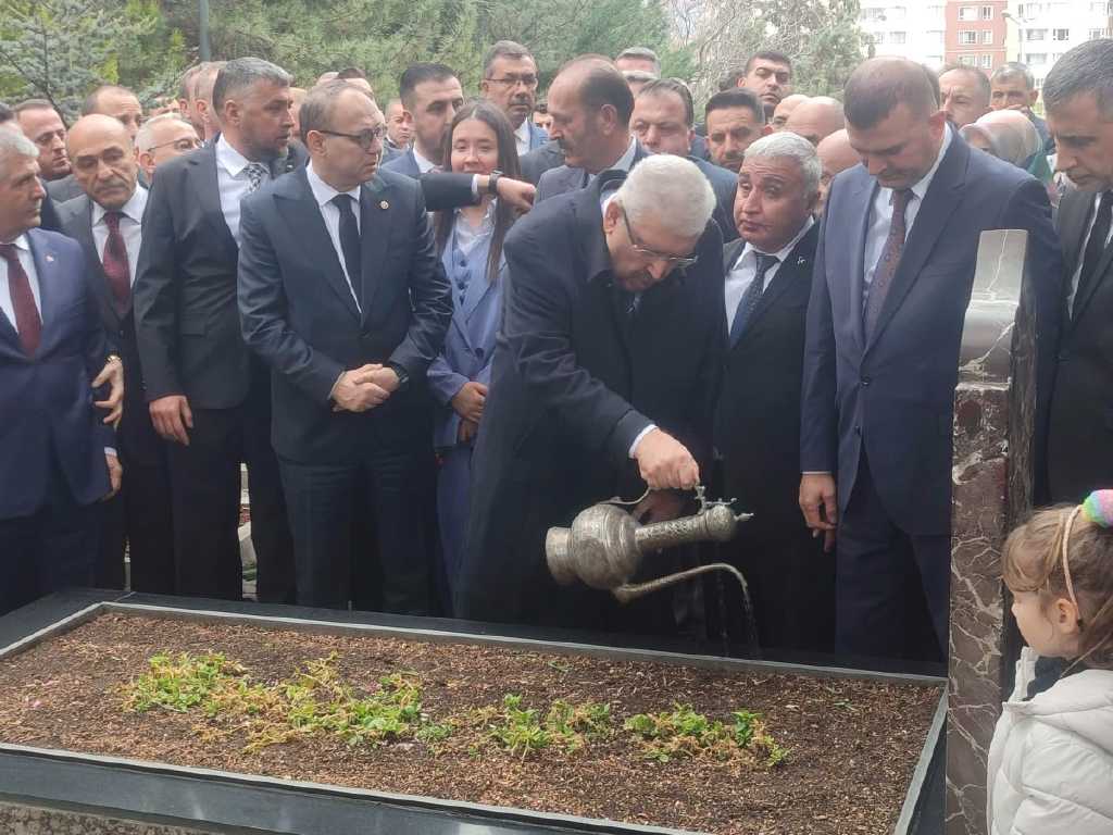 "MHP Başkanlık Divanı adına Semih Yalçın önderliğindeki heyet dakikalar önce Alpraslan Türkeş’in kabrini ziyaret etti. Semih Yalçın, Tamer Osman Ağaoğlu ve İlyas Topsakal da törende hazır bulundu. Bugün MHP lideri Bahçeli’nin iyileşme sürecinin ardından mesaisine dönmesi bekleniyor. Partiden bu konuda resmi bir açıklama yok ancak edinilen bilgilere göre Bahçeli’nin bugün mesaisine devam edeceği yönünde oldu.