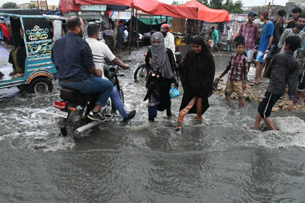 Ülkenin Sindh eyaletine bağlı Hyderabad şehrinde aralıksız yağan yağış nedeniyle su baskınları meydana gelirken, yaşanan elektrik kesintileri hayatı felç etti.