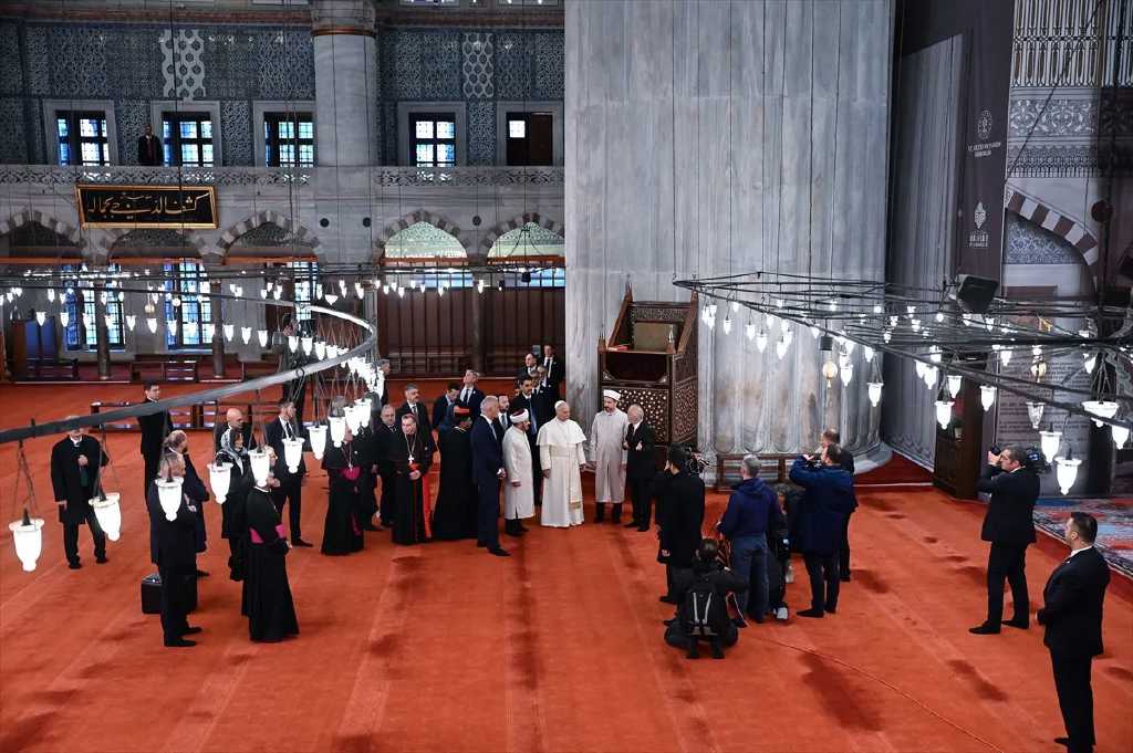 Ziyaret boyunca Papa’ya Kültür ve Turizm Bakanı Mehmet Nuri Ersoy, İstanbul İl Müftüsü Emrullah Tuncel ve cami görevlileri eşlik etti. Sultanahmet Camii müezzini Aşgın Musa Tunca, caminin tarihi ve mimarisi hakkında Papa’ya detaylı bilgi verdi.