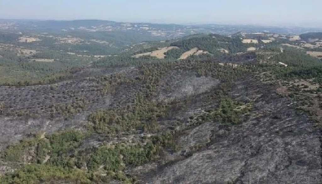 Tekirdağ'ın Şarköy ilçesindeki orman yangını kısmen kontrol altına alındı. Bölgede alevlerle mücadele devam ederken, gelen görüntülerde geniş bir alanın küle döndüğü görüldü.