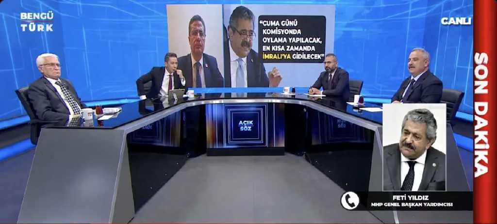 TBMM’de kurulan Milli Dayanışma, Kardeşlik ve Demokrasi Komisyonu’nun İmralı’da Abdullah Öcalan ile görüşmesi gündemdeki yerini koruyor. Cuma günü yapılacak oylama ile komisyonun İmralı’ya gidip gitmeyeceği karara bağlanacak. Tartışmalar sürerken MHP’li Feti Yıldız, katıldığı canlı yayında sürece ilişkin önemli değerlendirmelerde bulundu.