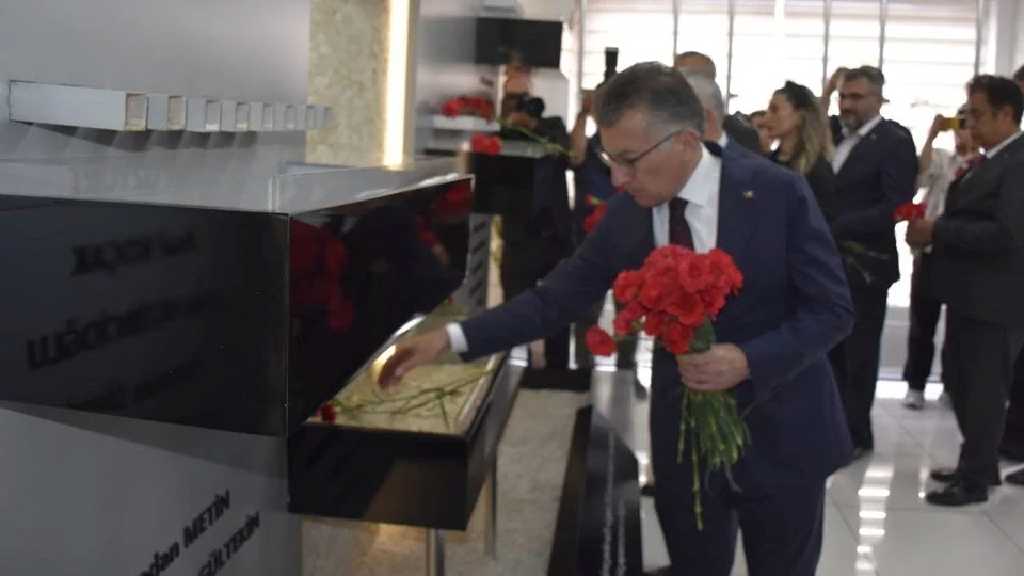 Heyet, bina içinde 2 Temmuz 1993'te yaşamını yitirenlerin isimlerinin yer aldığı anı köşesine karanfil bırakarak, dua etti.