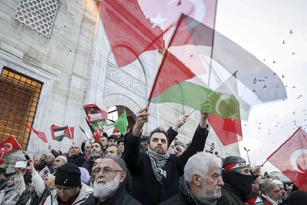 İstanbul'da yeni yılın ilk gününde 400'e sivil toplum kuruluşunun katılımıyla Filistin için "Dün Ayasofya, Bugün Emevi, Yarın Aksa" yürüyüşü düzenleniyor. Galata Köprüsü'nde Gazze'de devam eden zulme karşı dünyaya Filistin'e destek mesajı veriliyor. Ayasofya ve diğer camilerde toplanan vatandaşların kortejle Galata Köprüsü'ne yürüyüşe başladı.