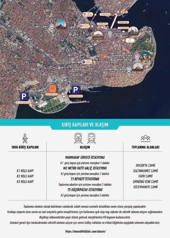Eminönü yönünden gelen katılımcılar K1 ve K2 numaralı kapıları, Karaköy yönünden gelen katılımcılar ise K3 numaralı kapıyı kullanabilecek.