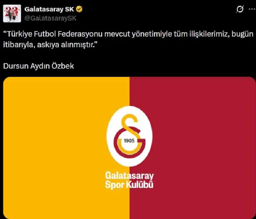 Hakem kararının ardından Galatasaray cephesinden doğrudan bir açıklama geldi. Sarı-kırmızılı kulübün resmi hesapları üzerinden konuşan Dursun Özbek, Türkiye Futbol Federasyonu yönetimiyle ilişkilerin kesildiğini duyurdu.