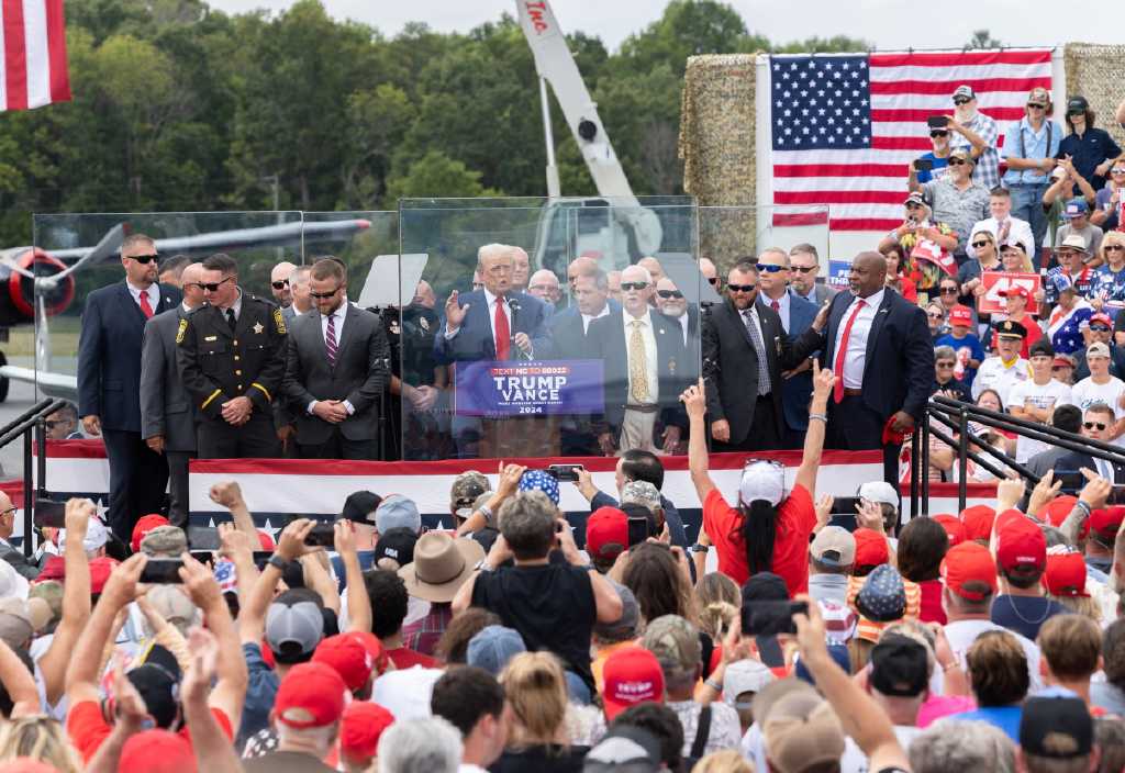 Temmuz ayındaki suikast girişiminde güvenlik önlemlerinin yetersiz olduğu nedeniyle yoğun eleştiri alan ABD Gizli Servisi, Kuzey Carolina'daki açık hava mitinginde sahnenin kurşun geçirmez cam ile koruma altına alınması dahil olmak üzere yoğun güvenlik önlemleri aldı.