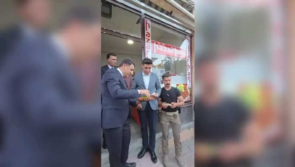 Tunceli Valisi Şefik Aygöl’ün, esnaf ziyareti sırasında koruma polisine sadece marul verip, içine çiğ köfte koymayı unutması sosyal medyada izleyenleri gülümsetti.