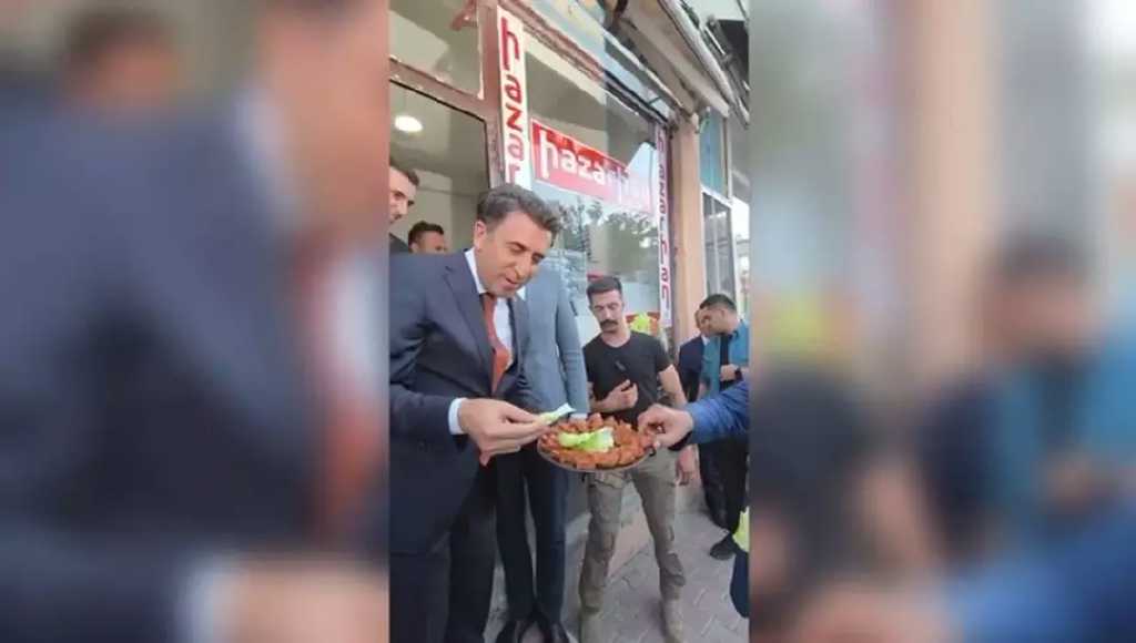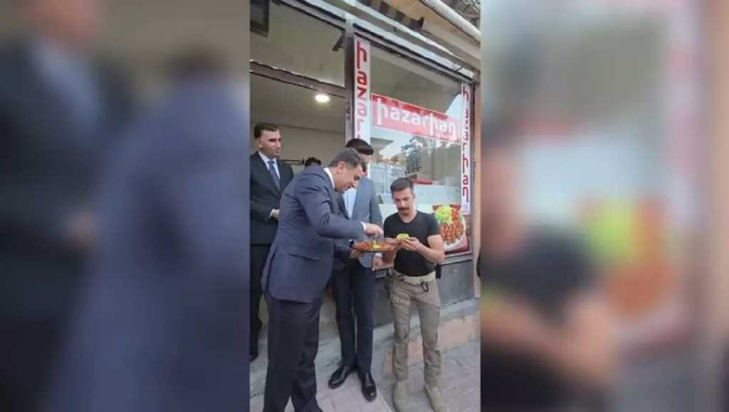 Tunceli Valisi Şefik Aygöl, Çemişgezek ilçesinde yaptığı esnaf ziyaretleri sırasında bir iş yerinde kendisine ikram edilen çiğ köfteden aldı. Aygöl, çiğ köfte tabağını yanındakilere uzatarak ikramda bulundu. Koruma polis memuruna sadece marul veren Aygöl, içine çiğ köfte koymayı unuttu.