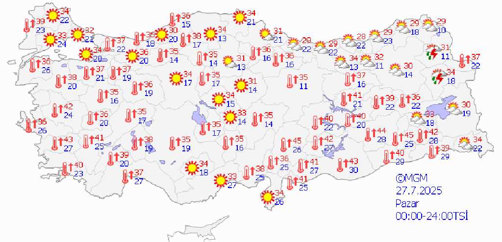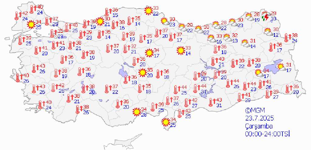 Bugün birçok ilde sıcaklık 40 dereceyi aşacak.