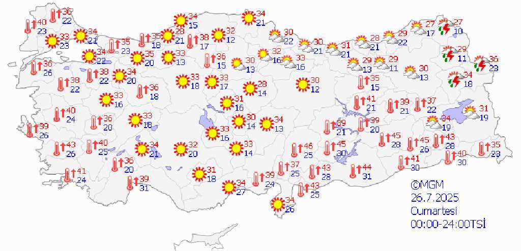Adıyaman, Şanlıurfa, Kahramanmaraş dolayları 44 derece olacak.