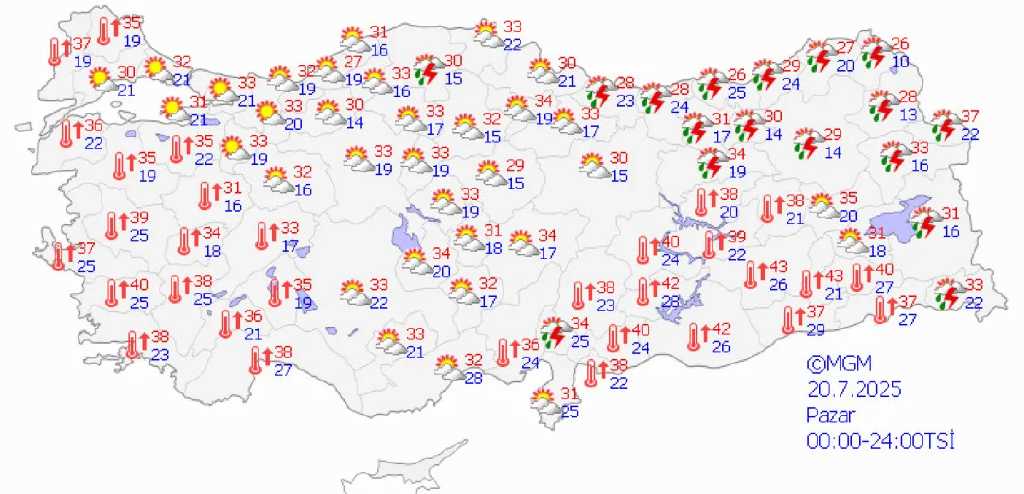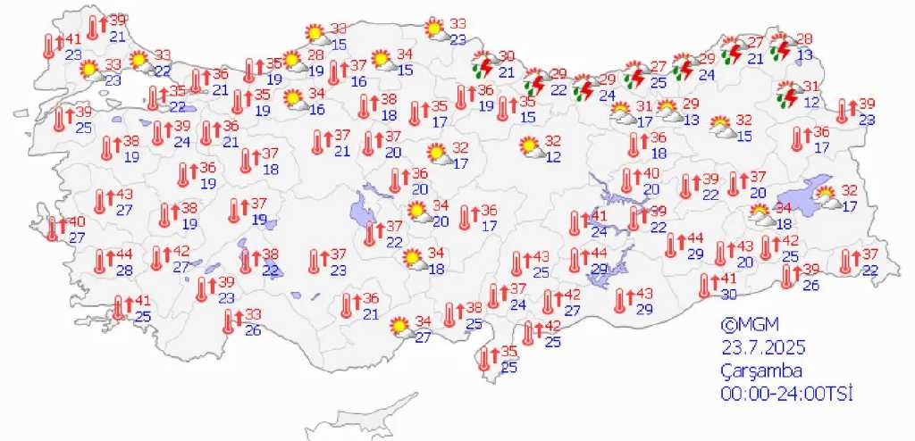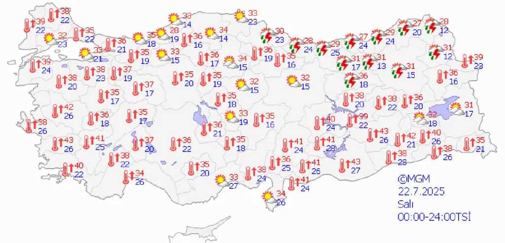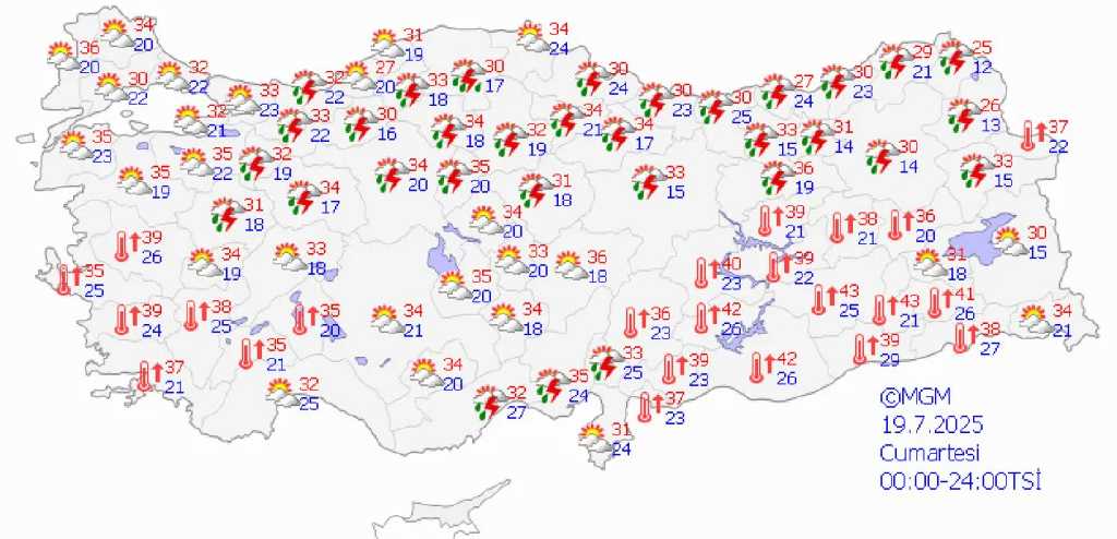 Meteoroloji ve AKOM'dan yapılan son değerlendirmelere göre 19-25 Temmuz tarihleri arasında hava sıcaklıklarının, mevsim normallerinin 6 ile 8 derece üzerine çıkması bekleniyor.