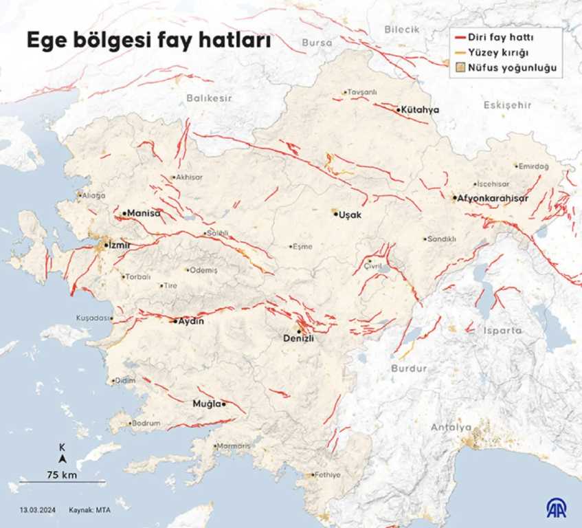 Ege Bölgesi ise diğer bölgelerden farklı olarak tek bir uzun fay yerine kısa ama çok sayıda fay hattından oluşan karmaşık bir yapıya sahip. Bu yapısal özellik, bölgede sık sık orta şiddette depremlerin yaşanmasına yol açıyor. İzmir, Muğla ve Aydın gibi iller, hem deniz içi hem kara içi faylanmalar nedeniyle sürekli olarak deprem tehdidi altında bulunuyor. Ege’deki kırıkların düzensizliği ve çeşitliliği, bölgede beklenmedik zamanlarda ani sarsıntıların ortaya çıkmasına neden olabiliyor.