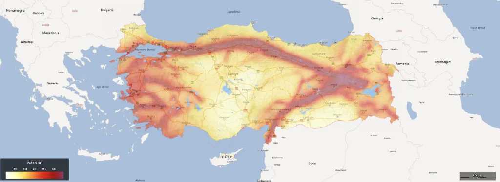 AFAD’ın yayımladığı güncel deprem tehlike haritası, Türkiye’nin batı, doğu ve kuzey kesimlerinde deprem riskinin çok yüksek olduğunu net bir şekilde işaret ediyor.