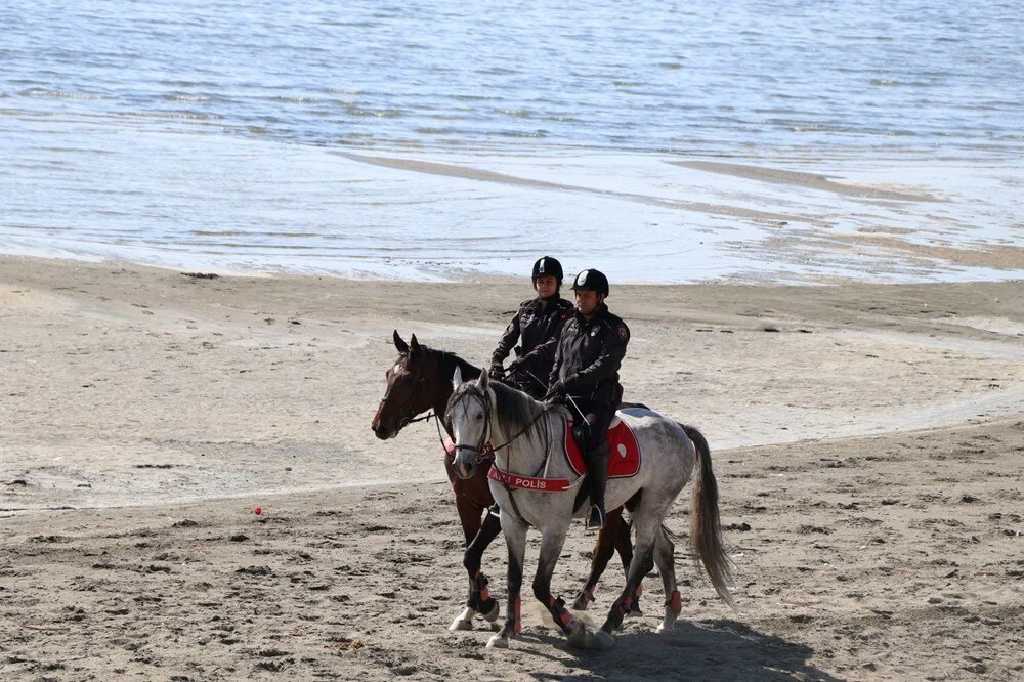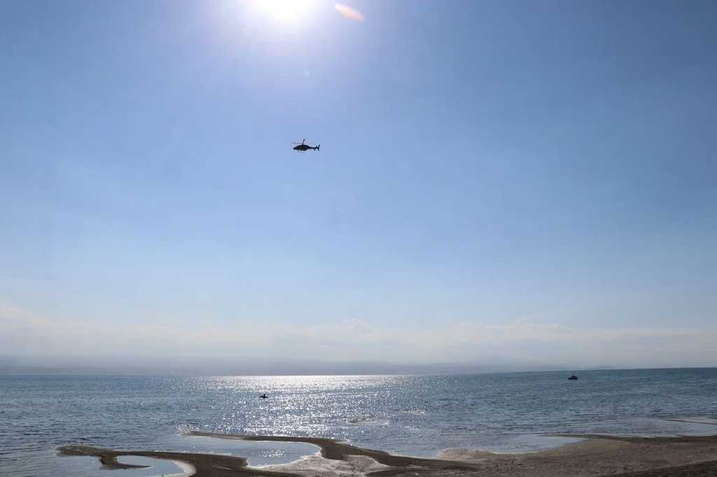 Van Gölü sahilinde Çevik Kuvvet polisleri, polis atlı birlikleri, göl üzerinde ise jandarma, polis, AFAD ve itfaiye ekipleri tekne ve botlarla arama çalışması yapıyor.