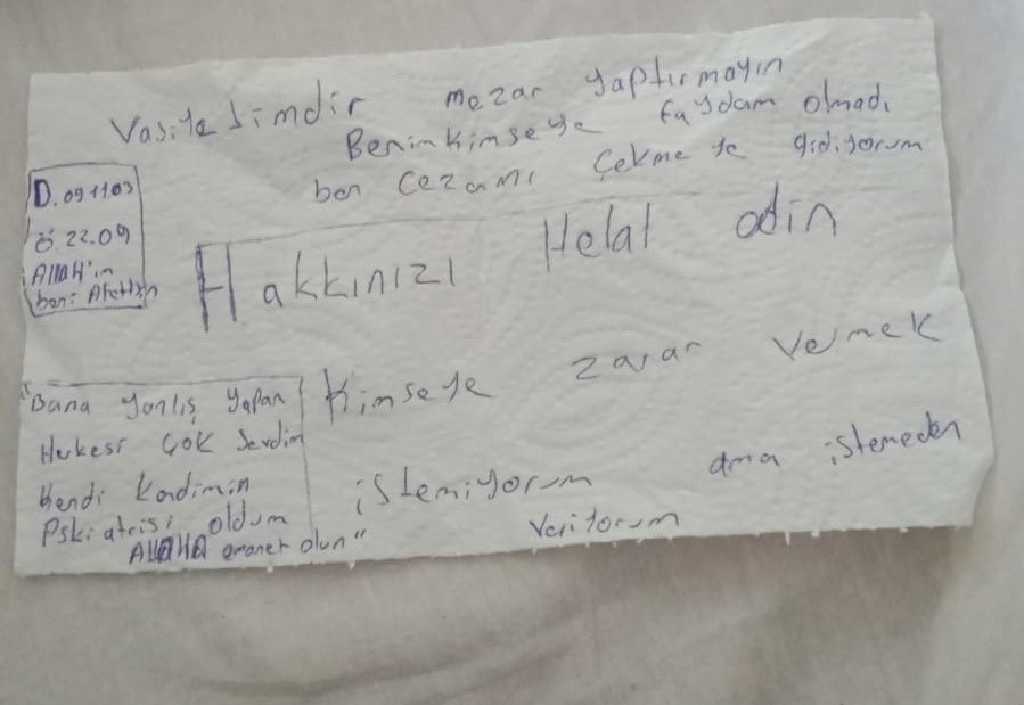“PEÇETENİN ÜSTÜNE VEDA NOTU YAZMIŞ”