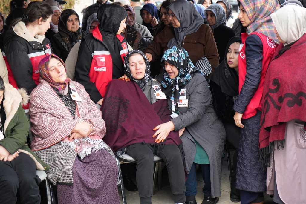 Cenazede güçlükle ayakta duran şehidin annesini, yakınları teselli ederken; şehidin kardeşleri gözyaşlarına boğuldu.
