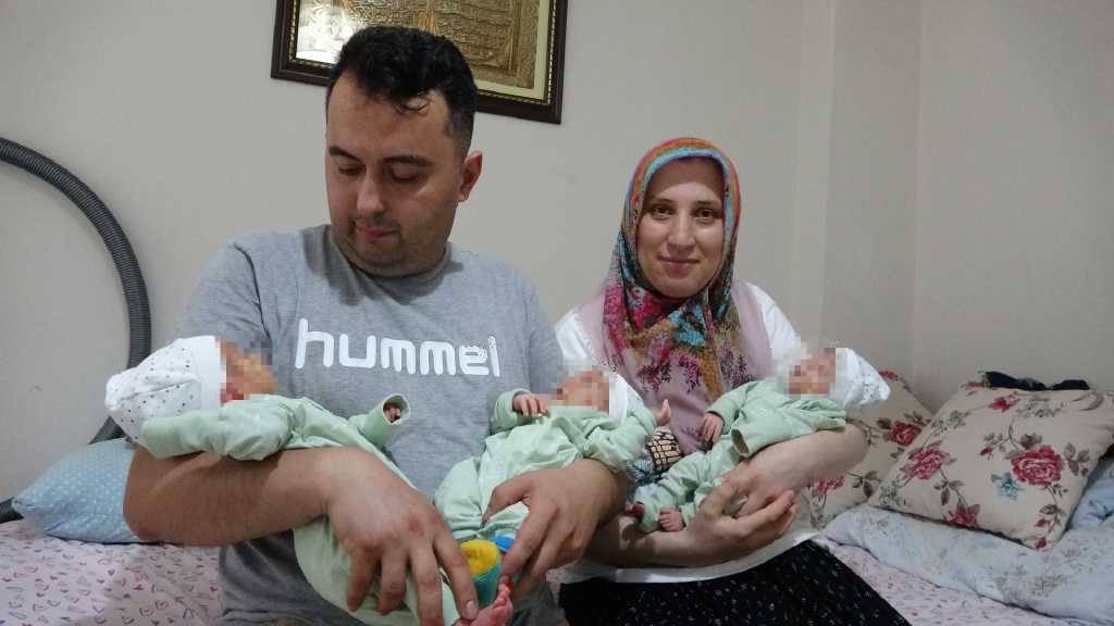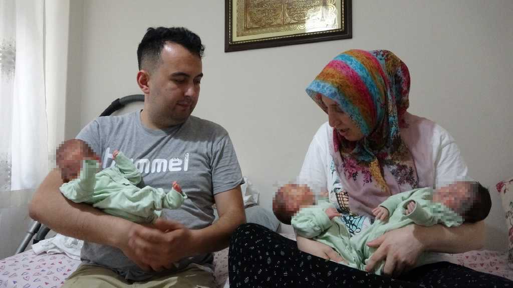 Giresun'da bir iş yerinde asgari ücretle çalışan eşi ev hanımı olan Ali Hakyemez ise, Cumhurbaşkanının, “En az 3 çocuk sahibi olun” isteğini tek seferde yerine getirdiklerini ifade ederek, “Eşimle 5 yıllık evliliğimiz sürecinde hep bir çocuğumuz olsun istiyorduk, 6. yılımızda üçüzümüz oldu. 5 yıl boyunca bir bebeğimiz olsun diye uğraştık doktorlara gittik, testler yaptırdık ama bir sorun olmadığını öğrendik. Biz de Allah'a bıraktık. Allah'ta bize böyle üçüz nasip etti çok şükür mutluyuz. Zaten Cumhurbaşkanımız 3 çocuk demişti, biz de Cumhurbaşkanımızın 3 çocuk isteğini tek seferde yerine getirdik. Cumhurbaşkanımızdan da desteklerini bekleriz. Tabi ki eşimin tek başına üçüzlere bakması kolay olmuyor ben de her konuda yardımcı oluyorum” diye konuştu.